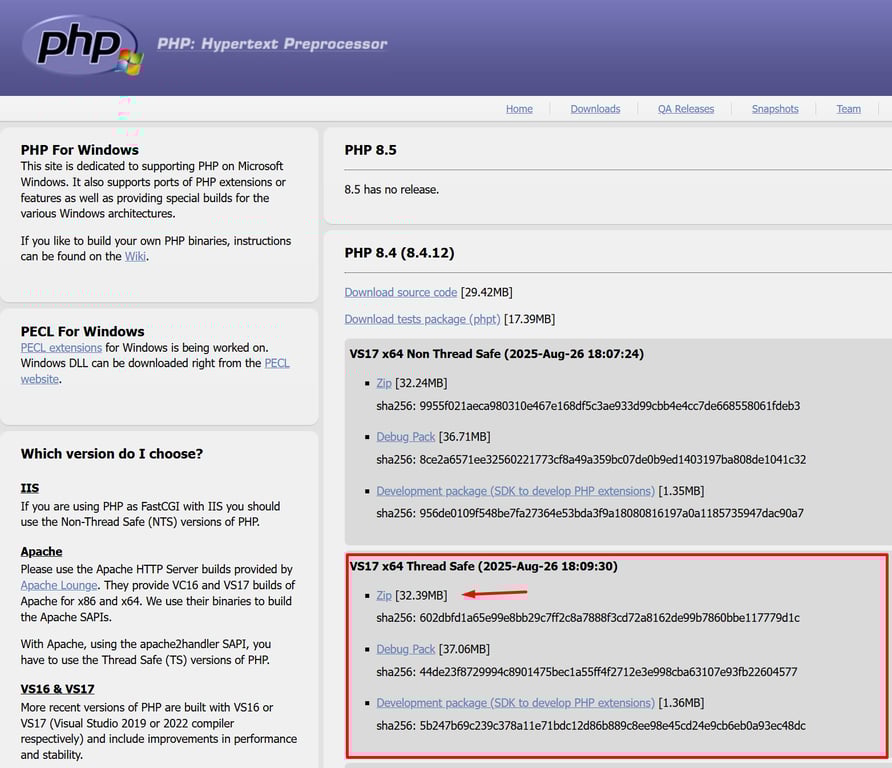 📥 Step 1: Download PHP for Windows