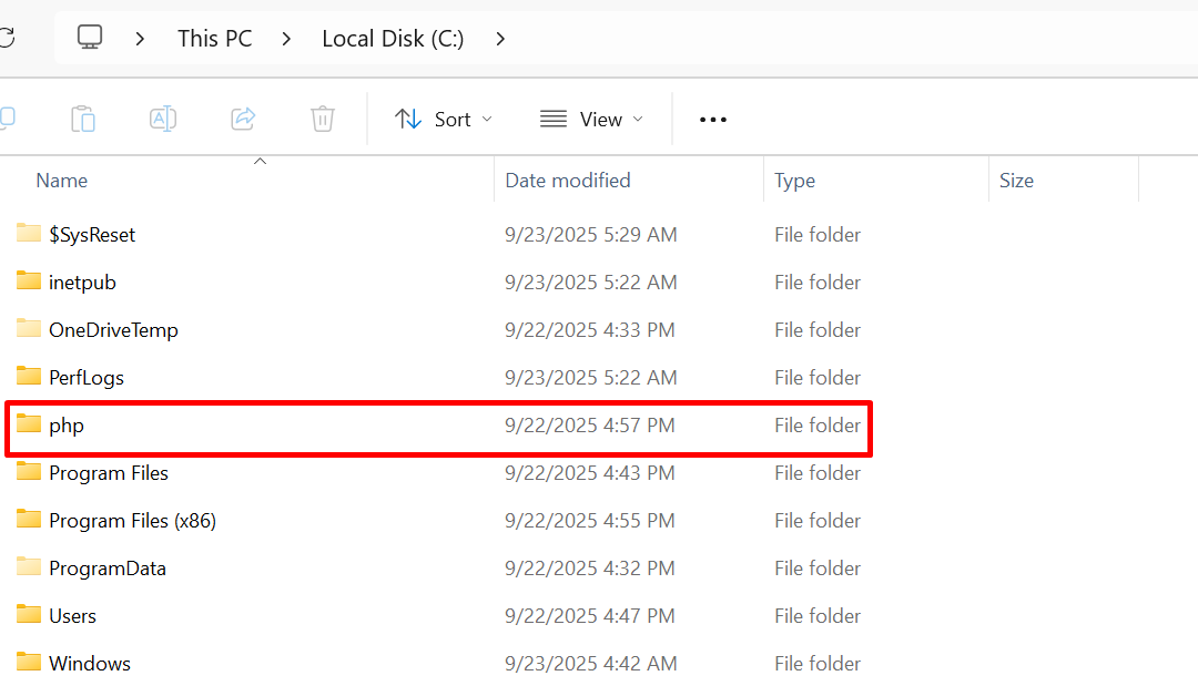 C:\php(Make sure to create aphpfolder in C: drive)