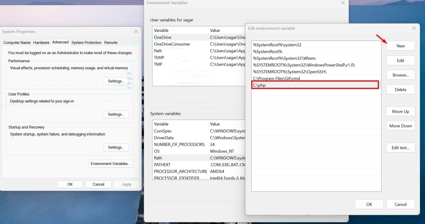⚙️ Step 2: Add PHP to the Windows PATH