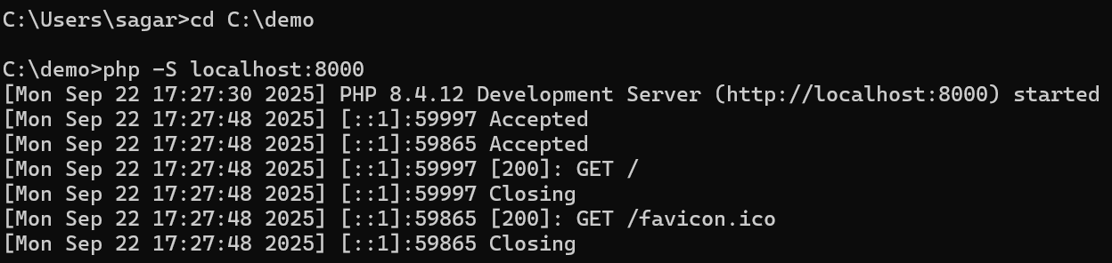 🌐 Step 4: Start PHP’s Built-In Development Server